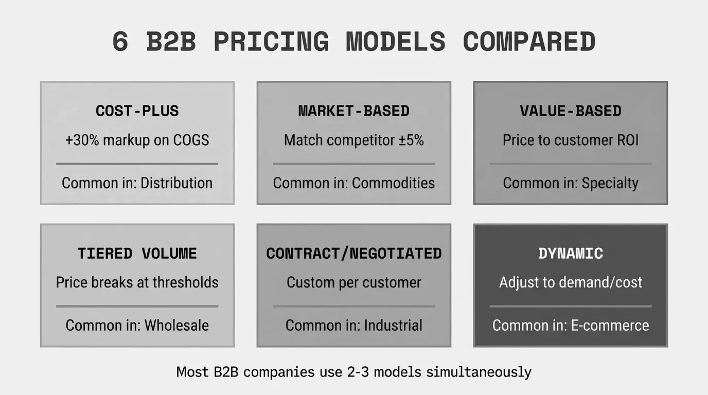 No single model works across your entire business. Most distributors and manufacturers end up running three or four of these simultaneously: