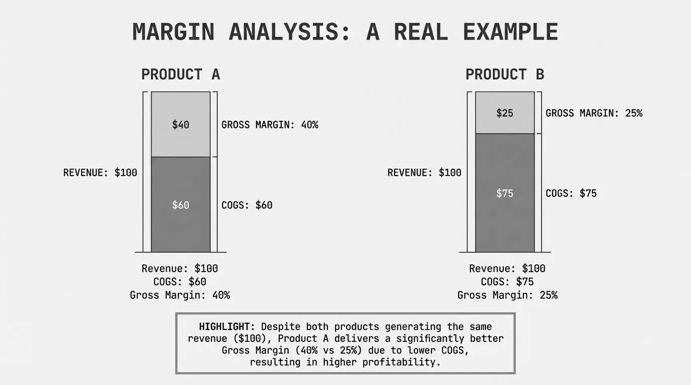 For a complete framework on margin types and methodology, see our margin analysis guide. The examples below put those concepts into practice.