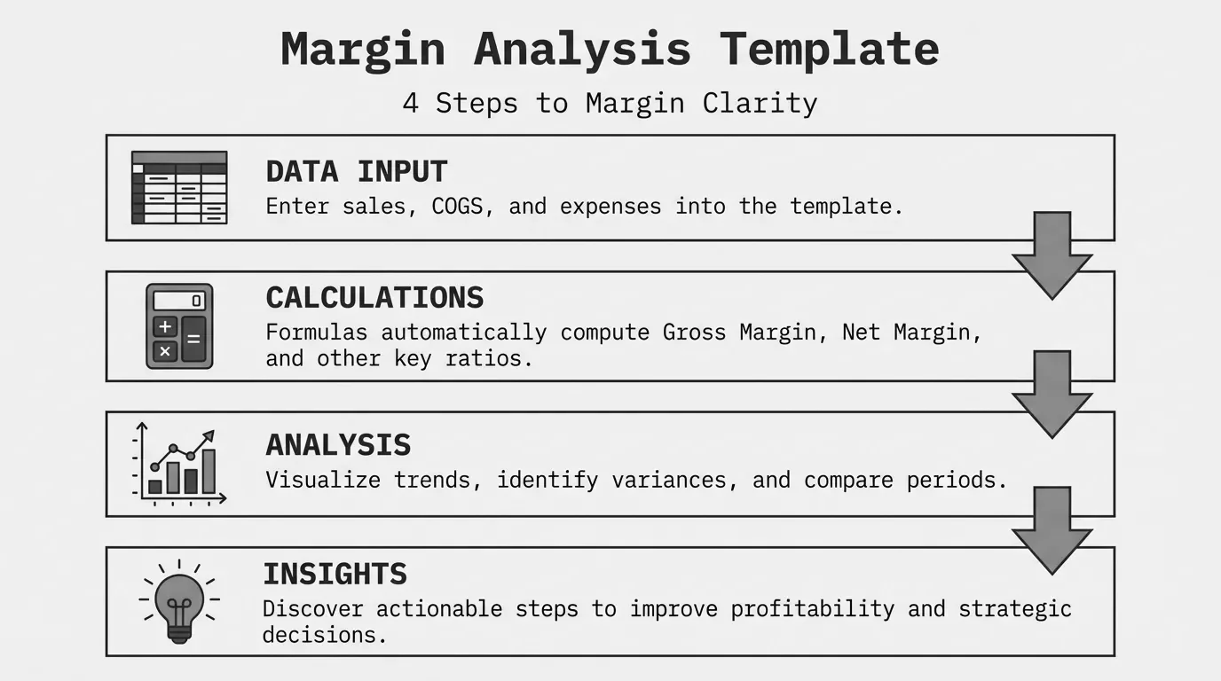 A margin analysis template organizes your revenue and cost data into a structure that reveals profitability by product, customer, or time period. The template itself is straightforward. The value comes from what you put into it and how you segment the output.