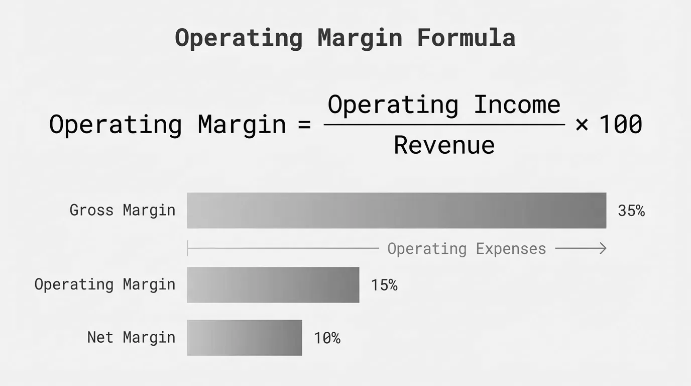 Operating Margin = ((Revenue - COGS - Operating Expenses) / Revenue) x 100A 15% operating margin means you keep $0.15 in operating profit for every $1.00 in sales.
