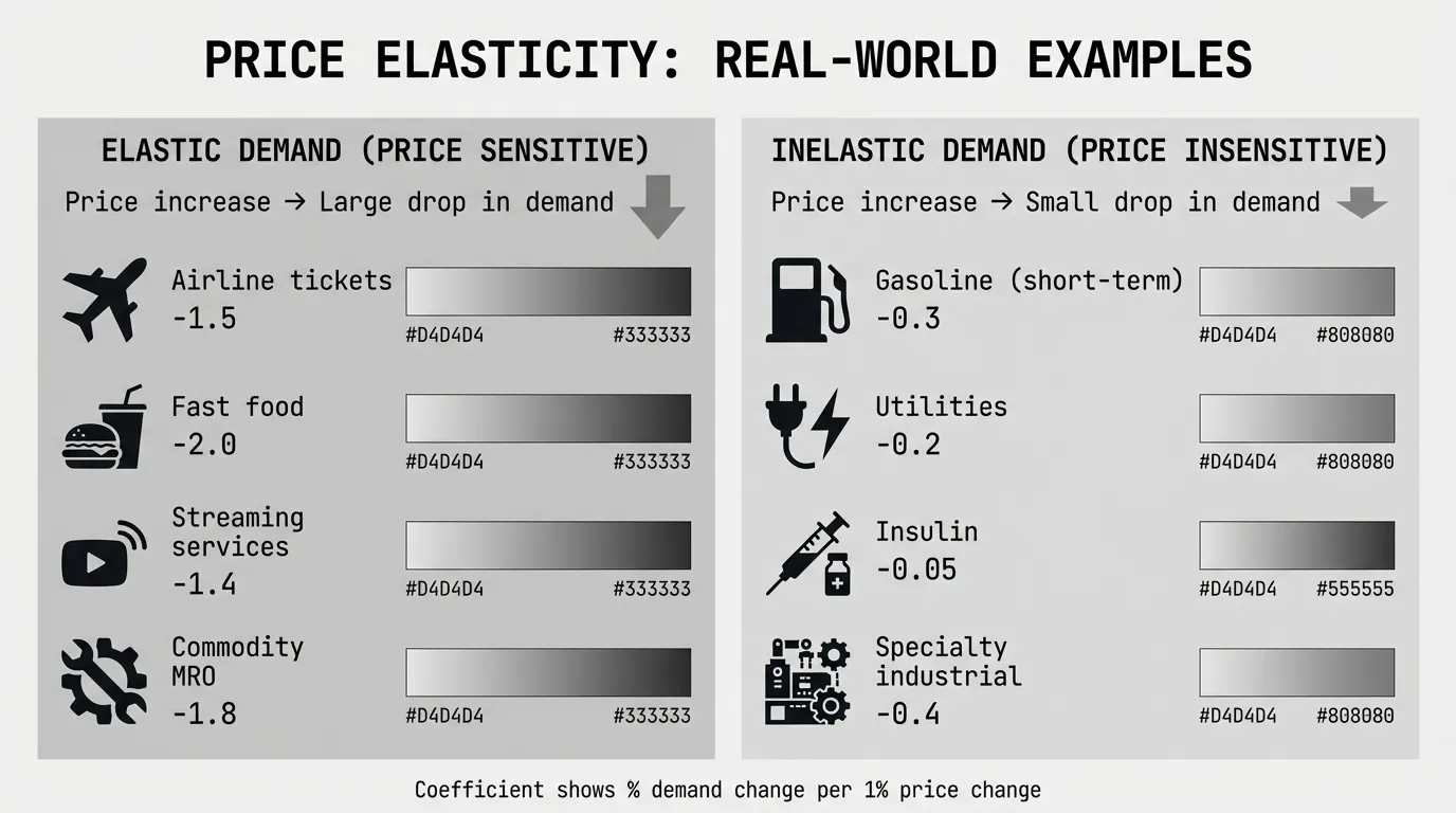 Price elasticity examples show how different products respond to price changes. Some products have elastic demand—a small price increase causes customers to buy much less. Other products have inelastic demand—even large price changes barely affect sales. The difference determines whether you can raise prices without destroying revenue.