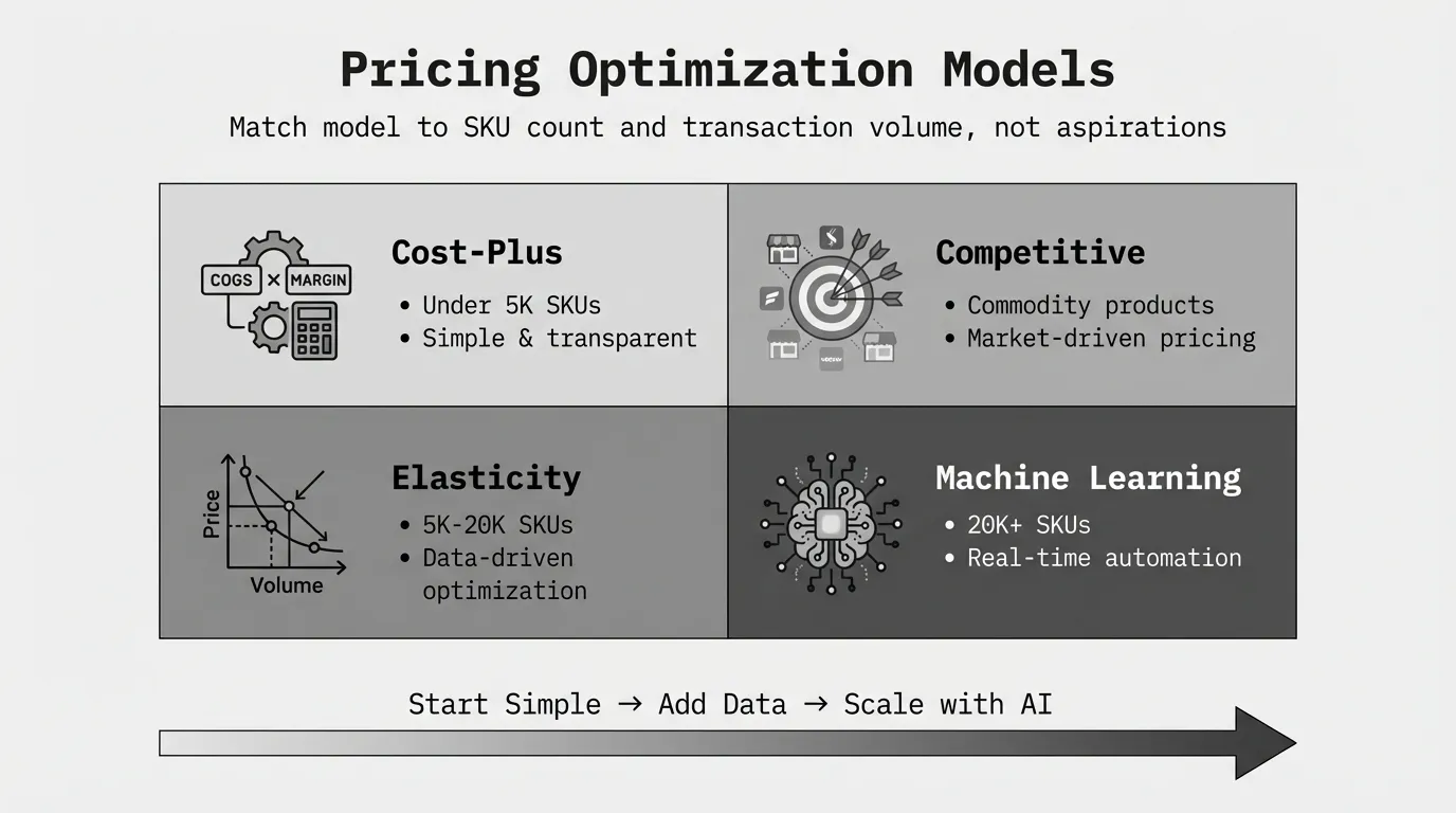 The right model isn't the most sophisticated one—it's the one that delivers margin improvement proportional to implementation cost and matches your data quality, SKU count, and pricing complexity.