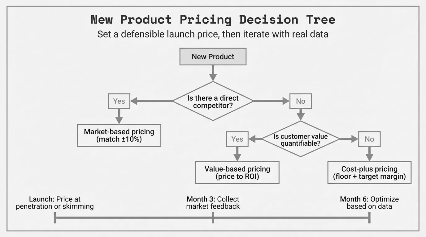 Most mid-market distributors and manufacturers get this wrong on day one. They default to their standard cost-plus markup, slap 30% on the new SKU, and move on. Six months later they're either losing quotes because they priced too high on a competitive item, or they're winning every deal and leaving thousands in margin on the table because they priced a differentiated product like a commodity.